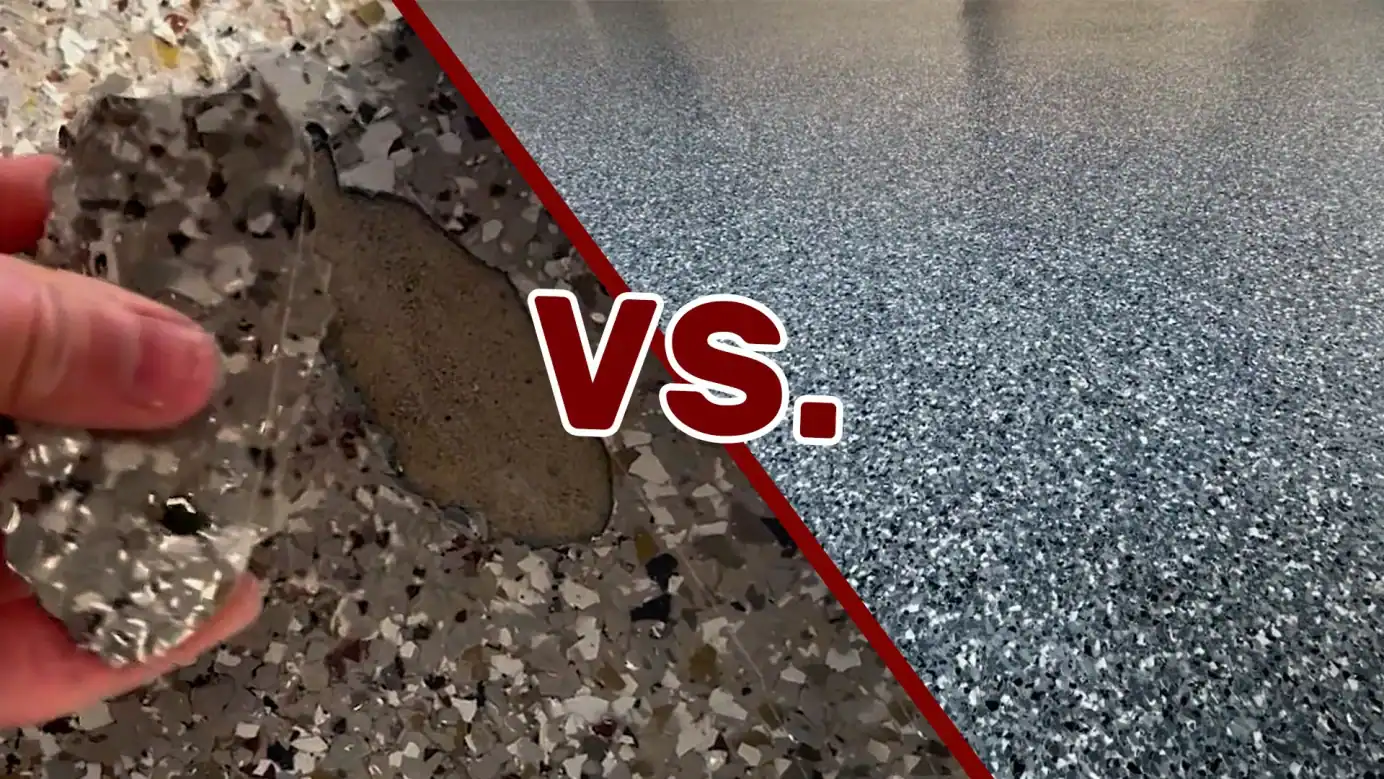 Plasticizer migration, commonly referred to as permanent tire staining, is another issue many warranties quietly exclude. Heat buildup in garage slabs causes tire compounds to leach into coatings over time. Many thin epoxies, lower-grade polyaspartics, and 1-day systems cannot resist this damage. Instead of improving their systems, competitors simply deny coverage.
