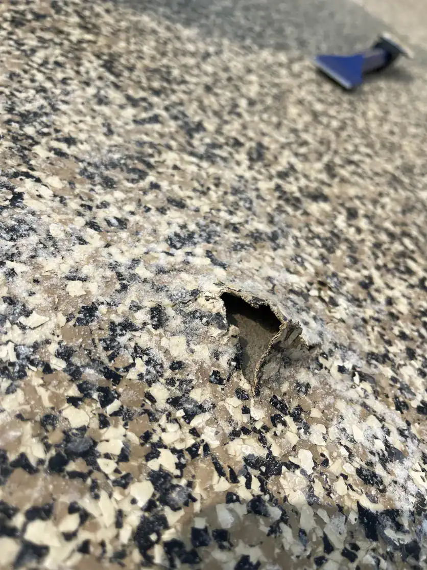 Quick-install systems use quick-curing polyurea or polyaspartic coatings from base coat to top coat (to complete the job in one day). While polyurea-polyaspartics are excellent topcoats, they simply don’t bond deeply with the concrete or stop vapor movement (because they go down thinly and cure very quickly). In Nashville’s climate, skipping the vapor barrier is a major risk.